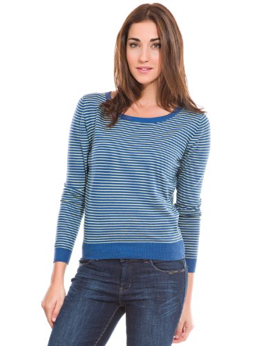 Review : Springfield - Pull-over à manches longues et rayures avec détail n?ud dans le dos - Femme, S, indigo