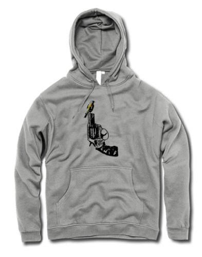 Sweat à capuche - Rouge-Gorge sur Revolver - oiseau, paix - Motif rétro - S - Gris Sports Feature