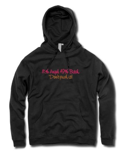 Sweat à capuche - 51% Angel, 49% Bitch. Don't push it! - Slogan - S - Noir Feature